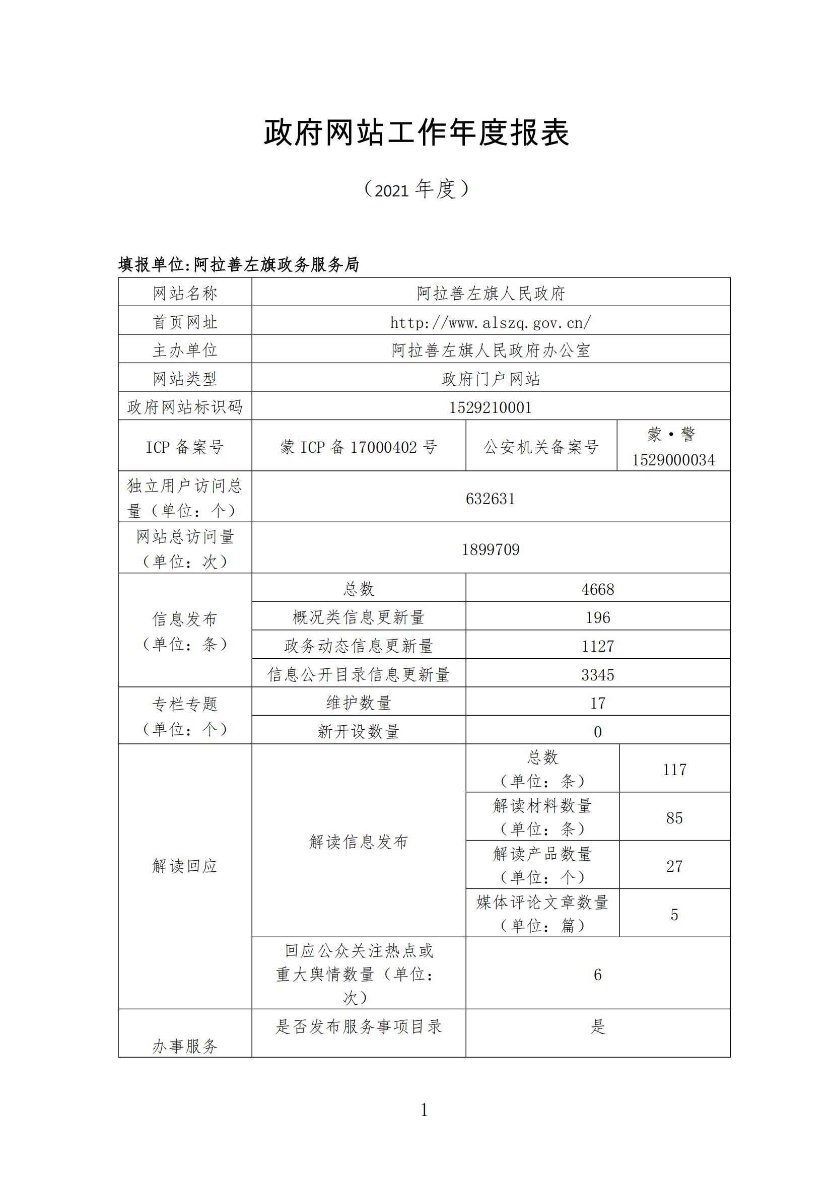 2021年阿拉善盟阿拉善左旗人民政府網(wǎng)站工作年度報表